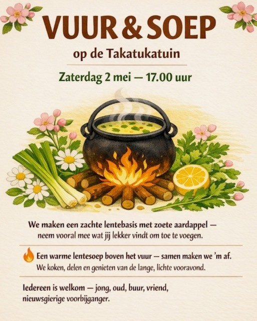 Let op! dit keer op zaterdag dus, maar vanaf eind mei gaan we net als eerder, de laatste vrijdag van de maand buiten in de grote pot koken.